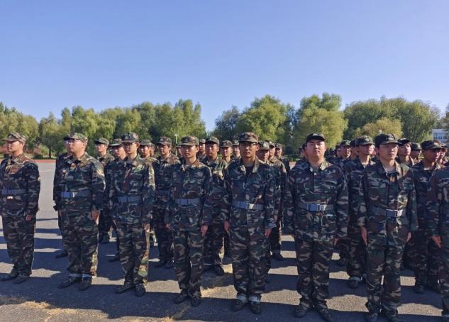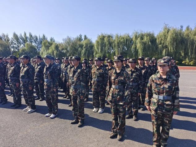 身着迷彩服的少年列队集结