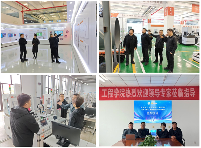 本次行程,主要参观了青龙湖汇博机器人关键零部件共享协同创新中心和汇博(唐山)公共实训基地,了解汇博机器人概况和实训基地培训体系,洽谈达成一致后,双方正式举行签约仪式,标志着吉林化工大学航空工程学院与汇博(唐山)先进制造公共实训基地的实习实训合作正式落地,为后续校企协同育人工作的开展奠定坚实基础。